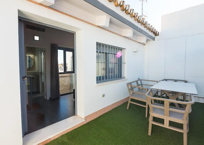 The accommodation is located a 17-minute walk from Puente de Isabel II and 10 minutes walk from Puerta de Jerez underground station. The venue provides 14 guestrooms appointed with an adjoining terrace, a balcony and a dining area for a pleasant stay in Seville.